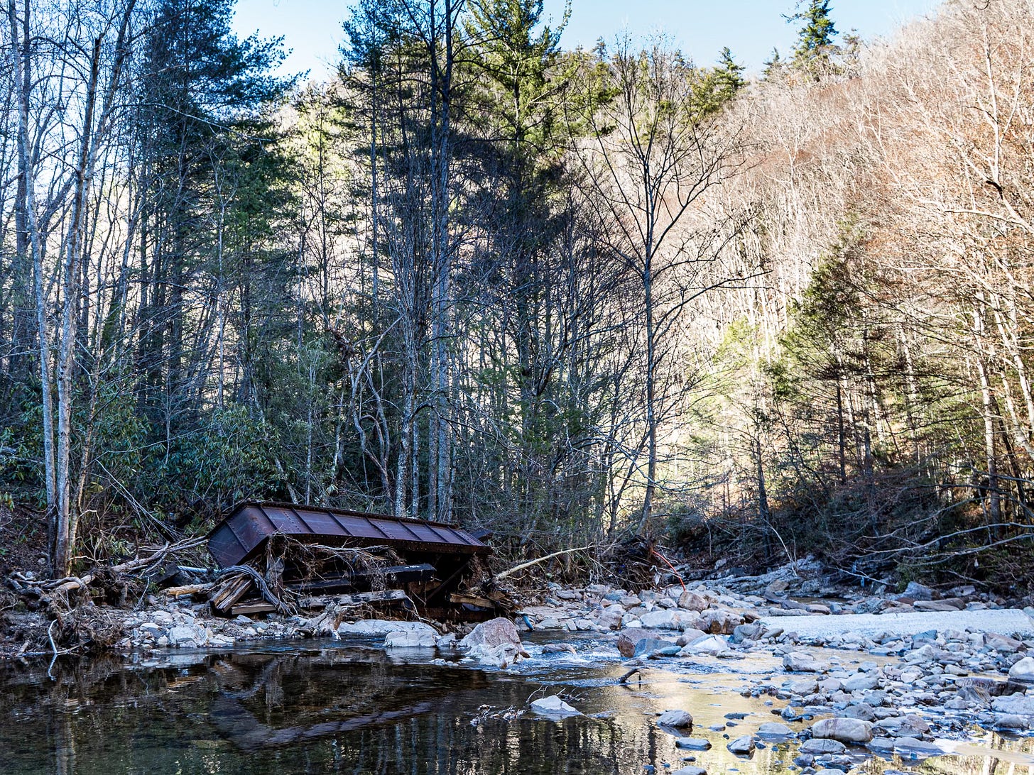 After our goodbyes were said to the man, we headed into the parts of the river no one, apart from first responders and rescuers, had been able to access since the storm. To my knowledge, we were the first non-essential workers to see that far back into Whitetop Laurel since the disaster.