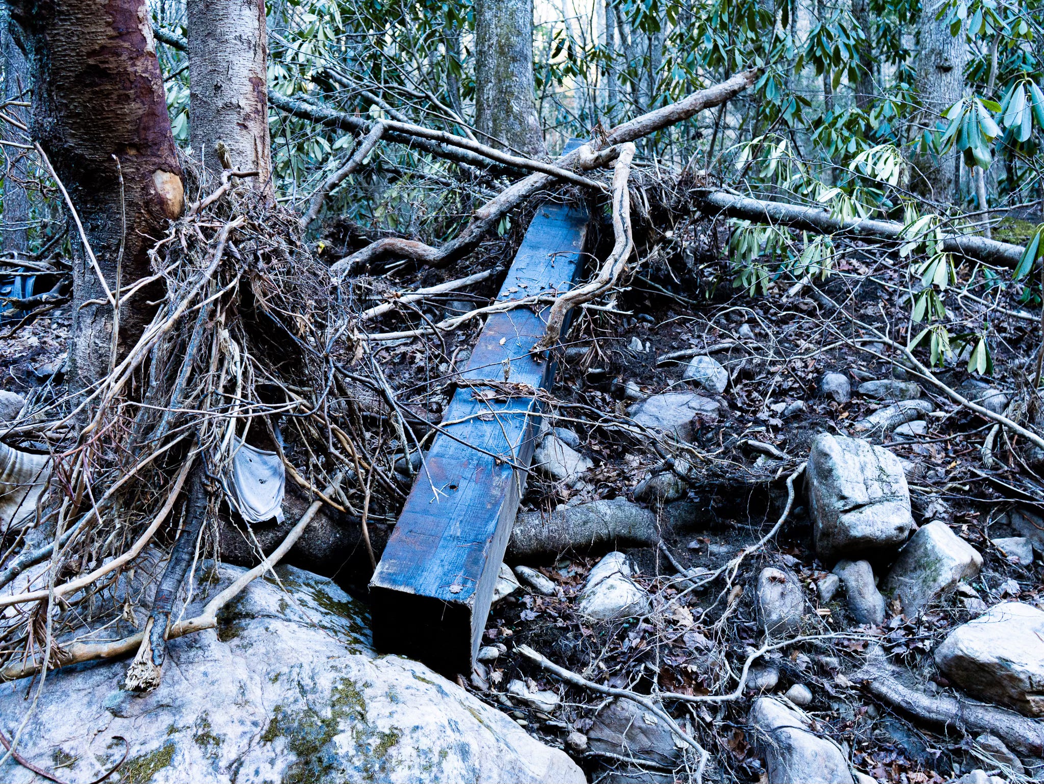 A blown-out section of Whitetop Laurel, caused by immense amounts of flood water and sediment